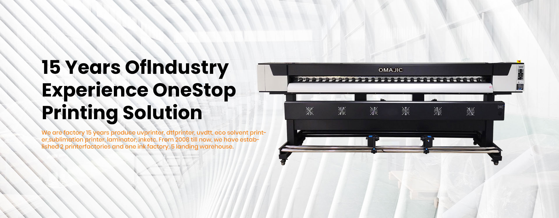 We are factory 15 years produce uv printer, dtf printer, uv dtf, eco solvent printer, sublimation printer, laminator, ink etc.