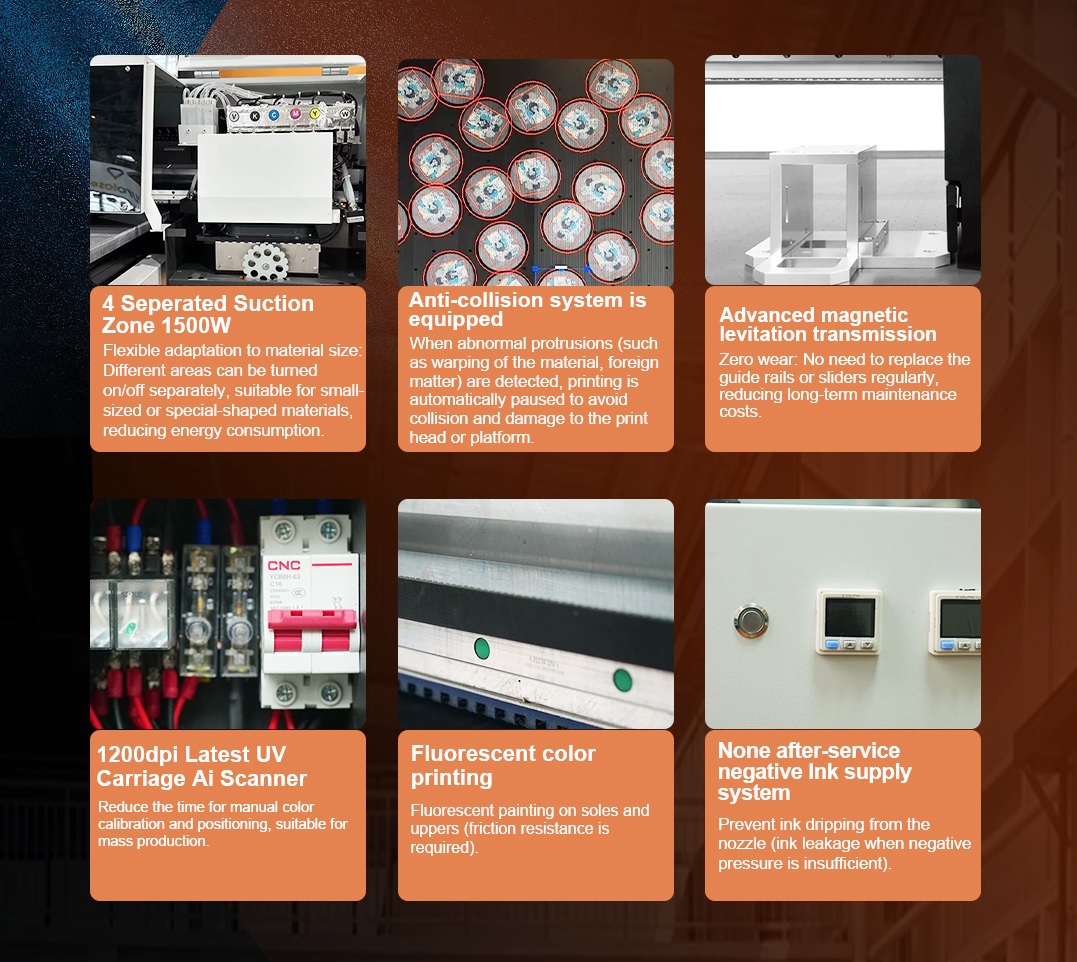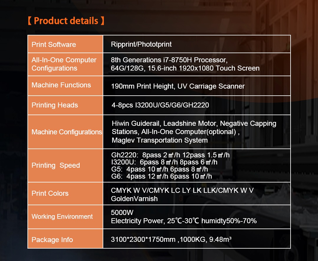 To ensure stability and precision for ultra-wide format printing, the frame is constructed with extremely rigid steel materials and heavy-duty linear guide rails.
